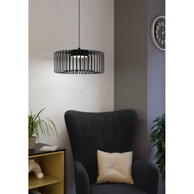 Lampa wisząca GINESTRONE-Z to doskonały wybór dla osób ceniących subtelne, lecz efektowne oświetlenie. Jej czarne metalowe elementy harmonijnie łączą się z ciepłym światłem LED, tworząc spójną całość.