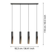 Lampa wisząca BARBOTTO z dwoma kloszami łączy elegancję czerni z ciepłym brązowym wykończeniem wnętrza. Idealna dla osób ceniących nowoczesny design.