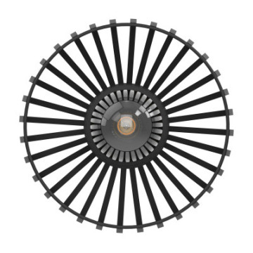 Lampa sufitowa MOGANO charakteryzuje się okrągłym kloszem z czarnego metalu, tworząc fascynujące efekty świetlne.