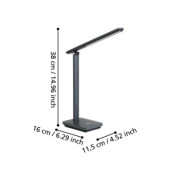 Lampa biurkowa LED INIESTA w kolorze szarym z czarnymi akcentami. Wyposażona w regulowaną głowicę oraz funkcję zmiany barwy światła, doskonale sprawdzi się w każdym wnętrzu.
