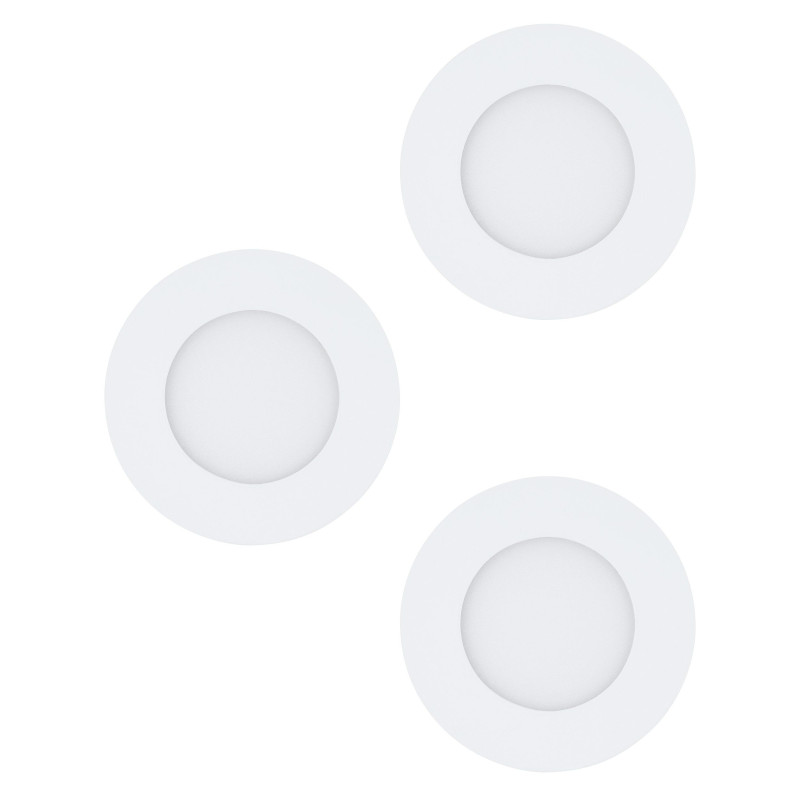 Zestaw trzech minimalistycznych opraw LED FUEVA 1, idealnych do łazienek i pomieszczeń o podwyższonej wilgotności, oferujących ciepłe i subtelne oświetlenie.