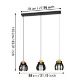 Lampa wisząca STILLINGTON 1 to elegancka oprawa w stylu industrialnym, łącząca trzy okrągłe klosze z czarnych płaskich elementów metalowych z drewnianymi oprawkami. Klosze zwieszone są na czarnej podsufitce, a ich design zapewnia fascynującą grę światła i cienia.