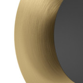 Futurystyczna lampa stołowa serii TOCINA. Oprawa w kolorze czarnym, z okrągłym, dekoracyjnym kloszem w kolorze szczotkowanego mosiądzu. Zintegrowane moduły LED umieszczone za czarną okrągłą maskownicą świecą ciepłym, białym, pośrednim światłem tworząc piękną, delikatną, poświatę. Lampa ma 60 cm wysokości. Włącznik znajduje się na przewodzie zasilającym.