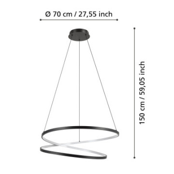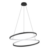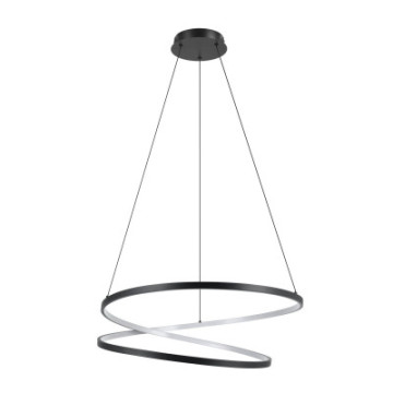 Efektowna lampa wisząca LED z serii RUOTALE, charakteryzująca się harmonijnie wygiętym profilem LED. Czarna obudowa i białe przesłony tworzą elegancką kompozycję, która idealnie pasuje do nowoczesnych wnętrz.
