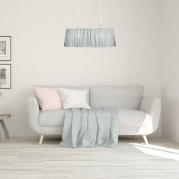 Lampa z kategorii: Lampy wewnętrzne. Typ lampy: Lampy wiszące. Lampa w stylu: Vintage/ Romantyczne. Sugerowane pomieszczenie: pokój dzienny, pokój do pracy. Stopień ochrony IP: IP20. Lampa w kolorze: biały. Kolor klosza: miętowy. Materiał z jakiego wykonana jest lampa: metal. Materiał z jakiego wykonano klosz: tekstylia. Liczba gniazd: 2 szt. Typ gniazda: E27. Zastosowane napięcie: 230V, 50Hz. Specyfikacja oprawy oświetleniowej: E27 2x MAX 60. Odległość od sufitu: 1460.0. Wymiar poziomo: 700.0 mm. Waga lampy (netto): 2.21 kg. W zestawie kabel tekstylny. Klasa ochronności: I. Tkaninowy klosz żyrandola Pixie w stylu vintage posiada dwa źródła światła. Jego metalowa oprawa została uzupełniona okrągłą podstawą z metalu z przedłużonymi, zaokrąglonymi rogami. Charakterystyczną cechą tego żyrandola jest miętowy, pomarszczony materiał, który przykrywa jego oprawę niczym spódnica, nadając mu romantyczny wygląd. Emitowane przez żyrandol światło jest delikatnie filtrowane spod lekko rozszerzającego się klosza, tworząc przyjemną atmosferę w każdym pomieszczeniu. Do żyrandola Pixie pasują dwie żarówki o mocy do 60 W i gnieździe typu E27. Jeśli chcesz podkreślić intymną, przytulną atmosferę, użyj do niego żarówek emitujących ciepłe, białe światło. Całkowita szerokość żyrandola to 700 mm, a jego odległość od sufitu wynosi 1460 mm. Ten model jest dostarczany bez żarówek.Typ: Lampy wiszące. Styl kategorii lamp: Vintage/ Romantyczne. Proponowane pomieszczenie: pokój dzienny. Proponowane pomieszczenie: pokój do pracy. Stopień ochrony IP20. Brak czujnika ruchu. Kolor lampy: biały. Kolor klosza: miętowy. Materiał lampy: metal. Materiał klosza: tekstylia. Liczba gniazd: 2. Typ gniazda: E27. Napięcie: 230V. Specyfikacja oprawy oświetleniowej: E27 2x MAX 60. Odległość od sufitu: 1460.0mm. Wymiar (poziomo): 700.0mm. Kabel tekstylny. Klasa ochronności: I.