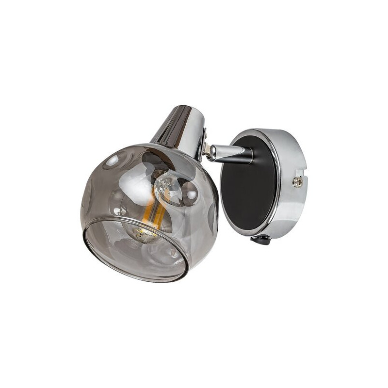 Lampa z kategorii: Lampy wewnętrzne. Typ lampy: Oświetlenie punktowe. Lampa w stylu: Nowoczesne. Sugerowane pomieszczenie: pokój dzienny, pokój do pracy. Stopień ochrony IP: IP20. Lampa w kolorze: chrom. Kolor klosza: szkło dymne. Materiał z jakiego wykonana jest lampa: metal. Materiał z jakiego wykonano klosz: szkło. Liczba gniazd: 1 szt. Typ gniazda: E14. Zastosowane napięcie: 230V, 50Hz. Specyfikacja oprawy oświetleniowej: E14 1x MAX 40. Odległość od ściany: 140.0. Wymiar poziomo: 100.0 mm. Waga lampy (netto): 0.21 kg. Rodzaj włącznika: z włącznikiem kołyskowym. Klasa ochronności: I. Nowoczesne oświetlenie punktowe Tamara będzie pięknym i eleganckim elementem wyposażenia Twojego salonu lub sypialni. Uzupełnieniem metalowej oprawy w kolorze chromu jest przyciemniany szklany klosz. Lampę można przymocować do ściany za pomocą okrągłej ozdobnej podstawy. Chromowana dekoracyjna podstawa zakryta jest czarnym panelem przednim, a przełącznik kołyskowy, który również jest czarny, znajduje się w jej dolnej części. Światło emitowane jest z lampy w tajemniczy sposób przez przyciemniane szkło okrągłego, otwartego u dołu klosza. Lampa Tamara może współpracować z pojedynczą żarówką o mocy do 40W. Typ gniazda to E14. Jeśli chcesz podkreślić intymną, przytulną atmosferę w pomieszczeniu, wybierz źródło ciepłego białego światła. Wymiary lampy punktowej Tamara są następujące: wysokość jest równa 125mm, średnica klosza to 100mm, odległość od ściany 140mm, a średnica zabudowy wynosi 100mm. Ten model jest dostarczany bez źródła światła.Typ: Oświetlenie punktowe. Styl kategorii lamp: Nowoczesne. Proponowane pomieszczenie: pokój dzienny. Proponowane pomieszczenie: pokój do pracy. Stopień ochrony IP20. Brak czujnika ruchu. Kolor lampy: chrom. Kolor klosza: szkło dymne. Materiał lampy: metal. Materiał klosza: szkło. Liczba gniazd: 1. Typ gniazda: E14. Napięcie: 230V. Specyfikacja oprawy oświetleniowej: E14 1x MAX 40. Odległość od ściany: 140.0mm. Wymiar (poziomo): 100.0mm. Wymiar (pionowo): 125.0mm. Rodzaj włącznika: z włącznikiem kołyskowym. Numer klosza: 19867. Klasa ochronności: I.