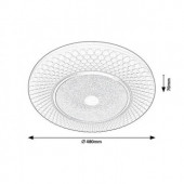 Lampa z kategorii: Lampy wewnętrzne. Typ lampy: Lampy sufitowe. Lampa w stylu: Nowoczesne. Sugerowane pomieszczenie: pokój dzienny, sypialnia, pokój do pracy. Barwa światła: można zmieniać, Strumień świetlny: 5470lm. Lampa w technologii led Stopień ochrony IP: IP20. Lampa w kolorze: chrom. Kolor klosza: biały. Materiał z jakiego wykonana jest lampa: metal. Materiał z jakiego wykonano klosz: tworzywo sztuczne. Żywotność źródła światła: 50000h. Gwarancja: 5 lat. Średnie zużycie energii: 72.0 kwh/1000 Ah. Zastosowane napięcie: 230V, 50Hz. Specyfikacja oprawy oświetleniowej: LED 72. Odległość od sufitu: 70.0. Wymiar pionowo: 480.0 mm. Średnica: 480.0 mm. Waga lampy (netto): 1.445 kg. Barwa światła: 3000-6500K. Pilot w zestawie. Możliwa zmiana barwy światła. Funkcja ściemniania. Metoda ściemniania: z pilotem zdalnego sterowania. Lampa wyposażona w funkcję pamięci. Lampa wyposażona w funkcję timera. Ustawienia timera: 1800. Lampa wyposażona w funkcję światła nocnego. Dodatkowo wyposażona w funkcję gwiezdnego efektu. Klasa ochronności: I. Prosty design nowoczesnej, okrągłej lampy sufitowej Tornado jest połączony z kilkoma dodatkowymi funkcjami. Świetnie sprawdzi się w salonie, sypialni lub gabinecie. Metalowa oprawa w kolorze chromu jest uzupełniona białym kloszem z tworzywa sztucznego z efektem gwiazdek. Tornado zawiera wbudowane źródło światła LED o mocy 72 W, strumieniu świetlnym 5470 lumenów i niezwykłej trwałości 50 000 godzin! Temperaturę barwową tej lampy sufitowej można regulować w zakresie 3000-6500 K w zależności od potrzeb, tzn. można ustawić ciepłe, naturalne lub zimne światło białe. Tornado ma regulację natężenia światła, co oznacza, że jego jasność może być również regulowana. Dodatkowe funkcje dodatkowe to wyłącznik czasowy, pamięć i funkcja oświetlenia nocnego. Wszystkie dodatkowe funkcje tej inteligentnej lampy można regulować za pomocą pilota. Za pomocą przełącznika ściennego można również ustawić temperaturę barwową. Średnica lampy wynosi 480 mm, a odległość od sufitu 70 mm. Prezentowany model ma 5 lat gwarancji. Typ: Lampy sufitowe. Styl kategorii lamp: Nowoczesne. Proponowane pomieszczenie: pokój dzienny. Proponowane pomieszczenie: sypialnia. Proponowane pomieszczenie: pokój do pracy. Temperatura barwowa: można zmieniać. Moc strumienia świetlnego: 5470lm. Technologia LED. Stopień ochrony IP20. Brak czujnika ruchu. Kolor lampy: chrom. Kolor klosza: biały. Materiał lampy: metal. Materiał klosza: tworzywo sztuczne. Żywotność: 50000h. Gwarancja: 5 lat. Średnie zużycie energii (kwh/1000 Ah): 72.0. Napięcie: 230V. Specyfikacja oprawy oświetleniowej: LED 72. Odległość od sufitu: 70.0mm. Średnica: 480.0mm. Temperatura barwowa: 3000-6500K. Pilot w zestawie. Fumkcja zmiany barwy światła.Lampa wyposażona w ściemniacz. Metoda ściemniania: z pilotem zdalnego sterowania. Numer klosza: 19986. Funkcja pamięci. Funkcja timera. Ustawienia timera: 1800. Światło nocne. Gwiezdny efekt. Klasa ochronności: I.