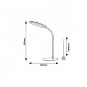 Lampa z kategorii: Lampy wewnętrzne. Typ lampy: Lampy stołowe. Lampa w stylu: Nowoczesne. Sugerowane pomieszczenie: pokój do pracy. Barwa światła: można zmieniać, Strumień świetlny: 910lm. Lampa w technologii led Stopień ochrony IP: IP20. Lampa w kolorze: popielaty. Kolor klosza: biały. Materiał z jakiego wykonana jest lampa: metal. Materiał z jakiego wykonano klosz: tworzywo sztuczne. Żywotność źródła światła: 20000h. Klasa energetyczna źródła światła: F. Gwarancja: 5 lat. Średnie zużycie energii: 10.0 kwh/1000 Ah. Zastosowane napięcie: 230V, 50Hz. Specyfikacja oprawy oświetleniowej: LED 10. Wymiar poziomo: 360.0 mm. Waga lampy (netto): 0.81 kg. Barwa światła: 3000-6000K. Możliwa zmiana barwy światła. Funkcja ściemniania. Metoda ściemniania: z wyłącznikiem stykowym. Rodzaj włącznika: z wyłącznikiem stykowym. Klasa ochronności: II. Lampa biurkowa Adelmo dzięki prostemu, klarownemu wzornictwu i dodatkowym funkcjom jest idealnym wyborem do każdego nowoczesnego biura. Wykonana z metalu i wykończona w kolorze szarym lampa charakteryzuje się smukłym, zakrzywionym trzonem i zupełnie płaskim kloszem, który z boku wydaje się być prostym przedłużeniem trzonu. Lampa jest uzupełniona białym kloszem z tworzywa sztucznego i okrągłą podstawą dekoracyjną. Lampa Adelmo posiada wbudowane źródło światła LED o mocy 10 W. Trwałość źródła światła wynosi 20.000 godzin. Strumień świetlny lampy wynosi 910 lumenów, a strumień świetlny źródła światła 1000 lumenów. Istnieje możliwość regulacji temperatury barwowej lampy w zakresie od 3000 do 6500K, co oznacza, że lampa może emitować ciepłobiałe, naturalne lub zimnobiałe światło. Szerokość lampy biurkowej wynosi 360 mm, wysokość 330 mm, a długość przewodu 1900 mm.Typ: Lampy stołowe. Styl kategorii lamp: Nowoczesne. Proponowane pomieszczenie: pokój do pracy. Temperatura barwowa: można zmieniać. Moc strumienia świetlnego: 910lm. Technologia LED. Stopień ochrony IP20. Brak czujnika ruchu. Kolor lampy: popielaty. Kolor klosza: biały. Materiał lampy: metal. Materiał klosza: tworzywo sztuczne. Żywotność: 20000h. Klasa efektywności energetycznej: F. Gwarancja: 5 lat. Średnie zużycie energii (kwh/1000 Ah): 10.0. Napięcie: 230V. Specyfikacja oprawy oświetleniowej: LED 10. Wymiar (poziomo): 360.0mm. Wymiar (pionowo): 330.0mm. Temperatura barwowa: 3000-6000K. Fumkcja zmiany barwy światła.Lampa wyposażona w ściemniacz. Metoda ściemniania: z wyłącznikiem stykowym. Rodzaj włącznika: z wyłącznikiem stykowym. Klasa ochronności: II.