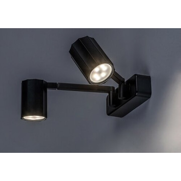 Typ lampy to Lampa ścienna. Styl lampy to Nowoczesne. Lampa przeznaczona do pomieszczenia: pokój dzienny. Lampa przeznaczona do pomieszczenia: pokój do pracy. Kolor lampy to Czarny Matowy. Kolor klosza to Czarny Matowy. Materiał lampy to Metal. Materiał klosza to Aluminium. Typ gniazda to GU10. Napięcie lampy to 230V. Specyfikacja oprawy oświetleniowej: GU10 2X MAX 5. Odległość od ściany wynosi 125.0mm. Wymiar (poziomo) wynosi 440.0mm. Wymiar (pionowo) wynosi 75.0mm. Średnica wynosi 50.0mm.