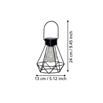 Nowoczesna lampa solarna w czarnym kolorze z transparentnym kloszem. Idealna do stylowego oświetlenia przestrzeni zewnętrznych.
