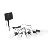 Minimalistyczna girlanda solarna LED o długości 2 m z sześcioma transparentnymi punktami świetlnymi, które emanują delikatnym, migoczącym światłem.