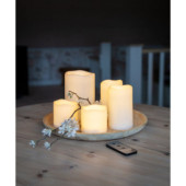 Realistyczna lampa solarna w kształcie świecy, wyposażona w efekt migotania, pilot zdalnego sterowania i timer.