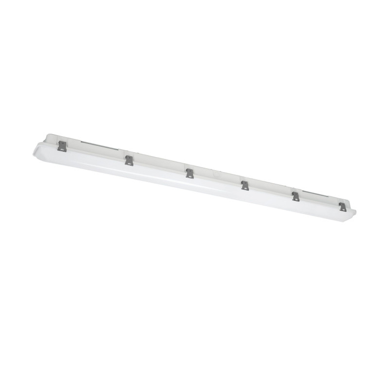 Lampa hermetyczna EGLO EXPERT PRIME o długości 149 cm. Wyposażona w zintegrowane źródło światła LED o mocy 42W, emituje neutralne białe światło o strumieniu świetlnym 6400 lm. Obudowa z szarego tworzywa sztucznego odpornego na promieniowanie UV i uderzenia (IK08) oraz klasa szczelności IP65 sprawiają, że jest to idealna oprawa do zastosowań przemysłowych.