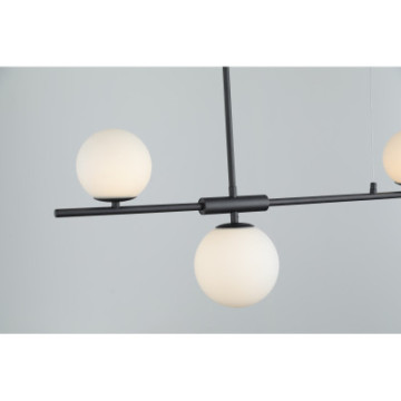 Lampa do pomieszczenia: Salon. Kolor przedmiotu: Czarny piaskowy. Materiał: Szkło. Materiał: Aluminium. Wysokość: 80-135cm. Szerokość: 100.5cm. Głębokość: 15cm. Ilość źródeł światła: 4. Typ źródła światła: G9. Napięcie: 230V. Moc źródła światła: 24W. Stopień ochrony IP: IP20. Gwarancja: 2 lata. Waga lampy: 2.1kg.